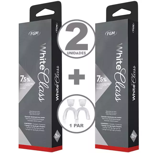 O Clareador Dental Whiteness Class 7,5% FGM foi desenvolvido para oferecer um clareamento dental eficaz e delicado, ideal para quem possui dentes sensíveis ou busca uma alternativa mais suave. Com duas seringas de 3g cada e um par de moldeiras, o kit permite uma aplicação confortável e personalizada, proporcionando resultados naturais com segurança. Sua formulação com peróxido de hidrogênio em baixa concentração atua de forma gradativa, promovendo o branqueamento dos dentes com menor agressividade, sem comprometer a eficácia do tratamento.