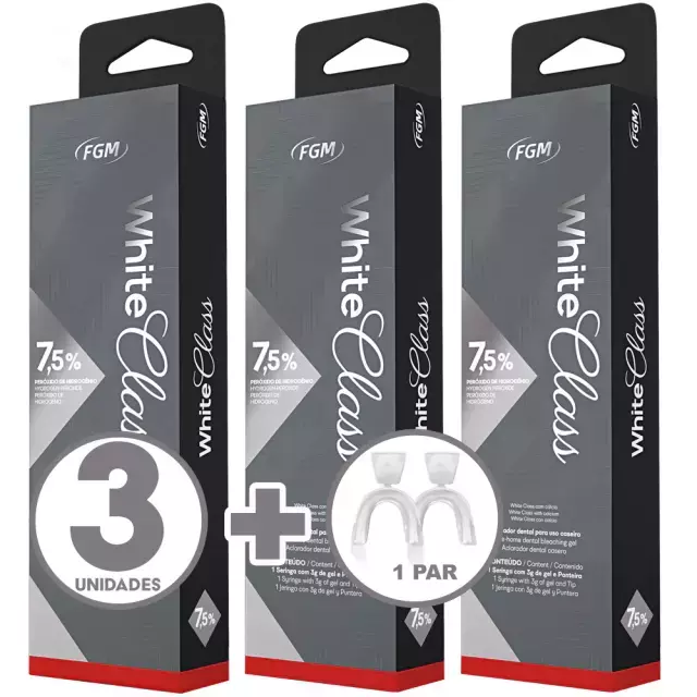 O Clareador Dental Whiteness Class 7,5% da FGM é uma solução eficaz e segura para clareamento dental caseiro supervisionado. Este kit com 3 seringas de gel clareador e 1 par de moldeiras é ideal para quem busca dentes mais brancos com menor risco de sensibilidade. Desenvolvido com peróxido de hidrogênio 7,5%, proporciona resultados progressivos e naturais, sem agredir o esmalte.